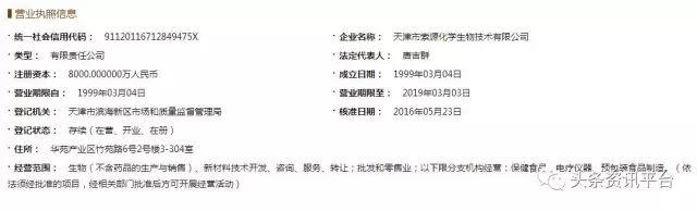 本网编辑在全国企业信用信息公示系统查询到索源生物注册时间是1999年3月4日,注册资金8000万人民币,是2016年5月23日由50万注册资金变更成8000万的,法人是唐吉群,股东是唐吉群和李晨辉。到2018年12月31日,李晨辉认缴7000万,目前实缴0万;唐吉群认缴1000万,目前实缴0万.
