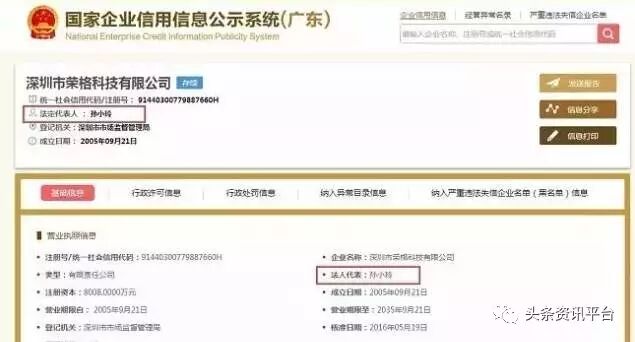 从上图可以看到,系统正式撤销孙会喜于2016年5月19日任深圳市荣格科技有限公司法人的资格,包括在其后变更的一系列董事成员,高管人员,监视成员的变更均被撤销。