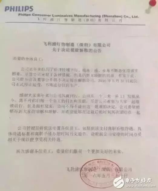 全球最大的照明设备制造商飞利浦,去年5月31日突然宣布关闭深圳的工厂。